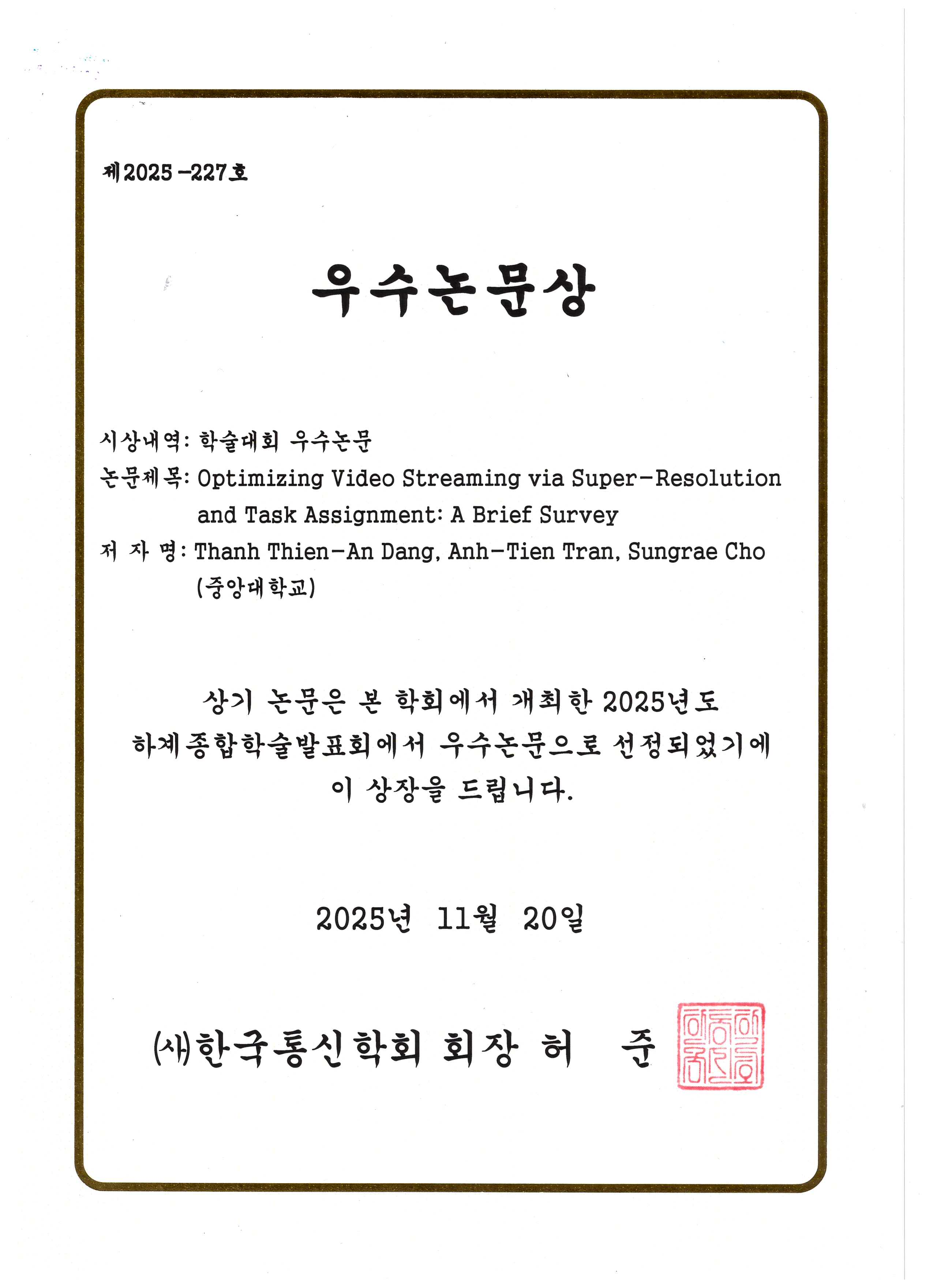 D. Won, G. Woraphonbenjakul, A. B. Wondmagegn, A.-T. Tran, D. Lee, D. S. Lakew, and S. Cho,